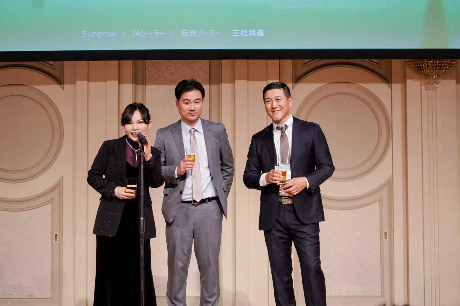 展会期间,安泰新能源再度携手晶澳科技、阳光电源,联合举办“グリーンな未来へ(Towards a green world)”主题恳亲会,感恩长期以来支持安泰新能源日本业务发展的合作伙伴与新老客户。